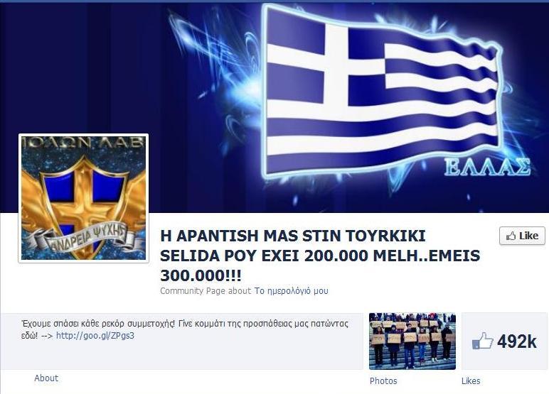 «H APANTISH MAS STIN TOYRKIKI SELIDA POY EXEI 200.000 MELH..EMEIS 300.000!!!» τιτλοφορείται η σελίδα με την οποία θα ασχοληθούμε σήμερα. Ναι, όπως το βλέπετε, η απάντησή μας στους Τούρκους θα δοθεί μέσω facebook και μάλιστα από μία ελληνική σελίδα που ο τίτλος της είναι γραμμένος με greeklish!