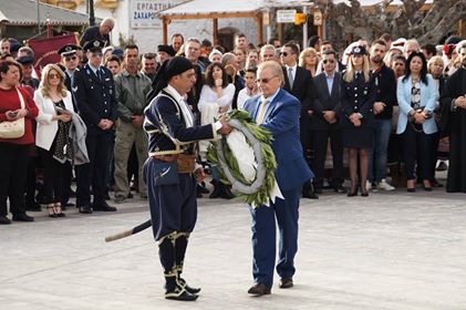Αφού κατέθεσε στεφάνι στο Ηρώο των «Αθανάτων», στο χαιρετισμό του ο Δήμαρχος Πάργας μεταξύ άλλων ανέφερε: