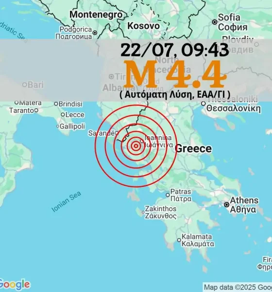Σεισμική δόνηση μεγέθους 4,4 βαθμών της κλίμακας Ρίχτερ σημειώθηκε το πρωί της Δευτέρας (22/7) στις 09:43, με επίκεντρο 23 χιλιόμετρα...