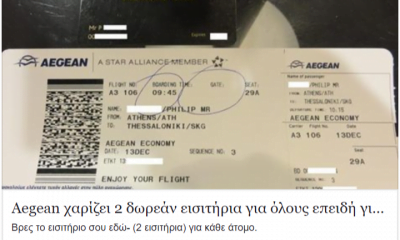 Κάποιοι επιτήδειοι θέλησαν να ξεγελάσουν τους χρήστες του facebook προσφέροντας δήθεν δωρεάν αεροπορικά εισιτήρια από την εταιρεία Αegean Airlines. Οι εν λόγω επιτήδειοι υπόσχονται δωρεάν εισιτήρια...