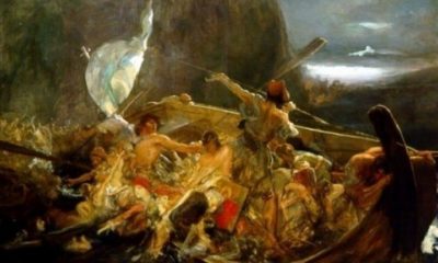 Η Καταστροφή των Ψαρών! Στων Ψαρών την ολόμαυρη ράχη περπατώντας η Δόξα μονάχη μελετά τα λαμπρά παλληκάρια και στην κόμη στεφάνι φορεί γινωμένο από λίγα χορτάρια...