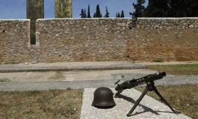 Γερμανικό πολυβόλο και κράνος στο Σκοπευτήριο της Καισαριανής εκεί όπου γίνονται οι εκτελέσεις από τους Ναζί (φωτ.: ΑΠΕ-ΜΠΕ / Ορέστης Παναγιώτου) Ξημερώματα Πρωτομαγιάς του 1944 και...