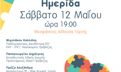 Ο σύλλογος Δύναμη σας προσκαλεί στην ημερίδα με θέμα “Ζώντας με τον αυτισμό” που θα πραγματοποιηθεί το Σάββατο 12 Μαΐου και ώρα 19:00 στη Θεοφάνειο Αίθουσα...